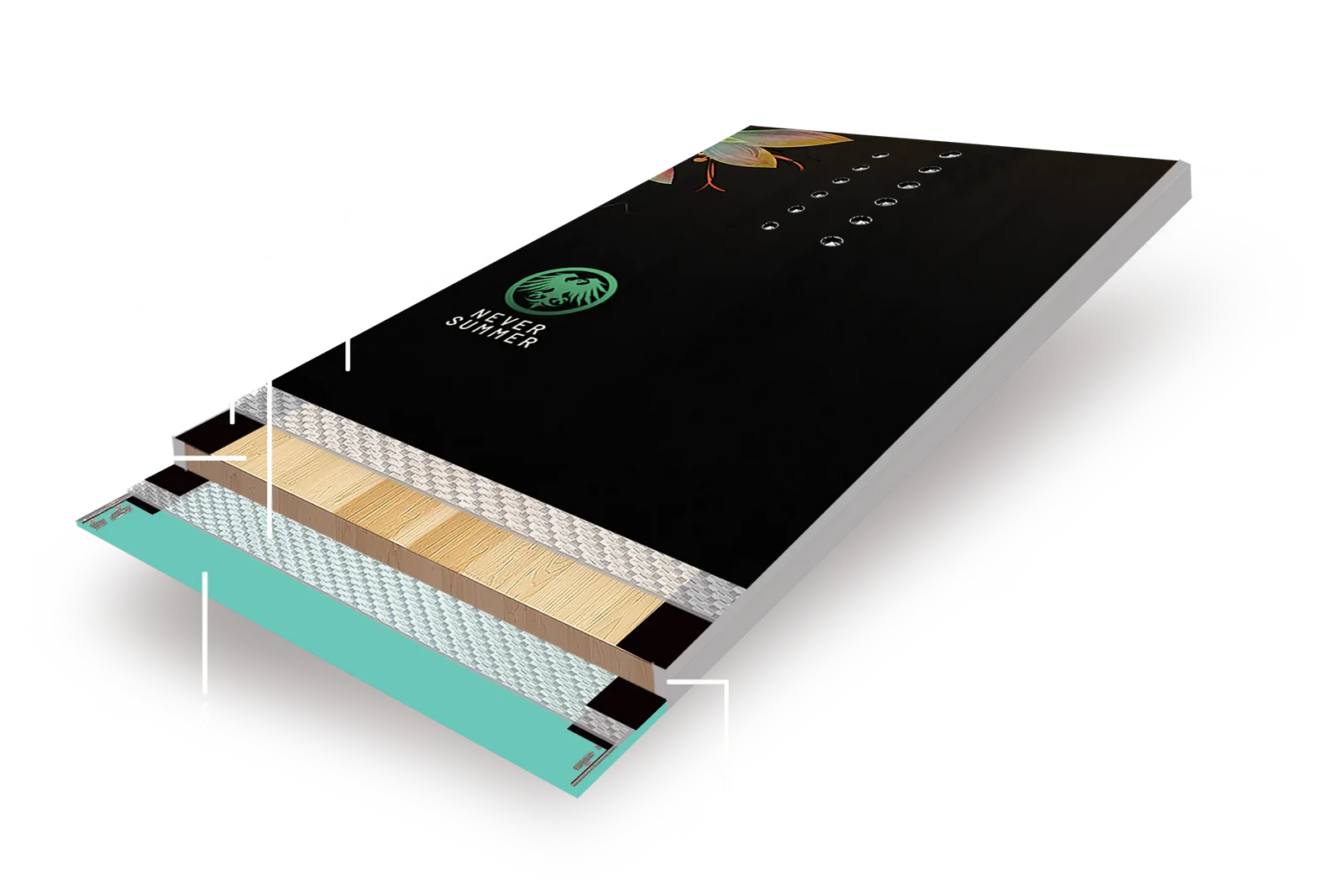 Используя устойчивую древесину тополя в сочетании с прочной лиственной древесиной березы, Never Summer создали самый легкий, но прочный сердечник на рынке. Never Summer SuperLight Wood Core – это сердечник, отшлифованный на станке с ЧПУ до доли миллиметра. Специально подобранный гибкий инструмент обеспечивает непревзойденную производительность сноубордов Never Summer.