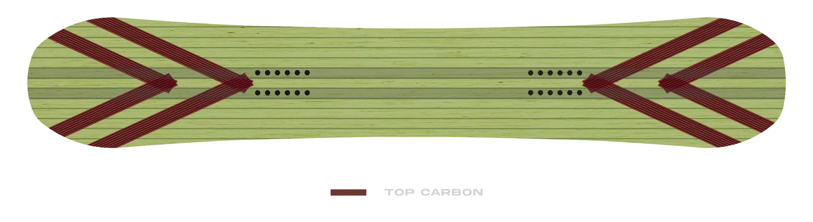 Карбоновые V-образные волокна расположенные к краям доски увеличивают торсионную жесткость и обеспечивают быстрое реагирование доски. Это идеальная вставка для переноса энергии до конца эффективного края, носа / хвоста, которая дает доске более мягкую и прощающую среднюю гибкость для торсионного контроля.