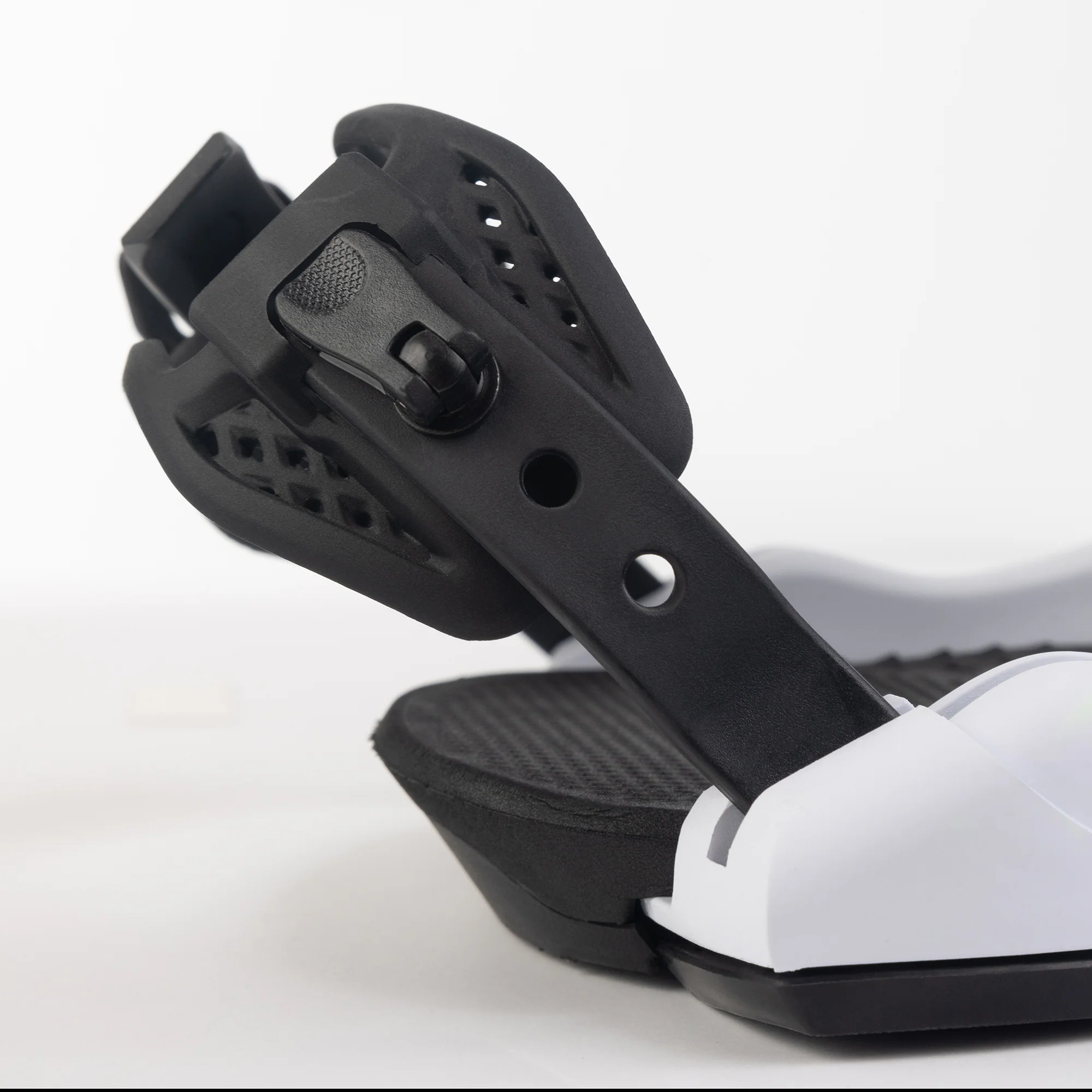 Запатентованные изогнутые стрепы Arbor, ремешки и гребенки отклоняются от крепления в сторону, чтобы открыть коврик и обеспечить легкий вход в крепления, освобождая ваши руки.