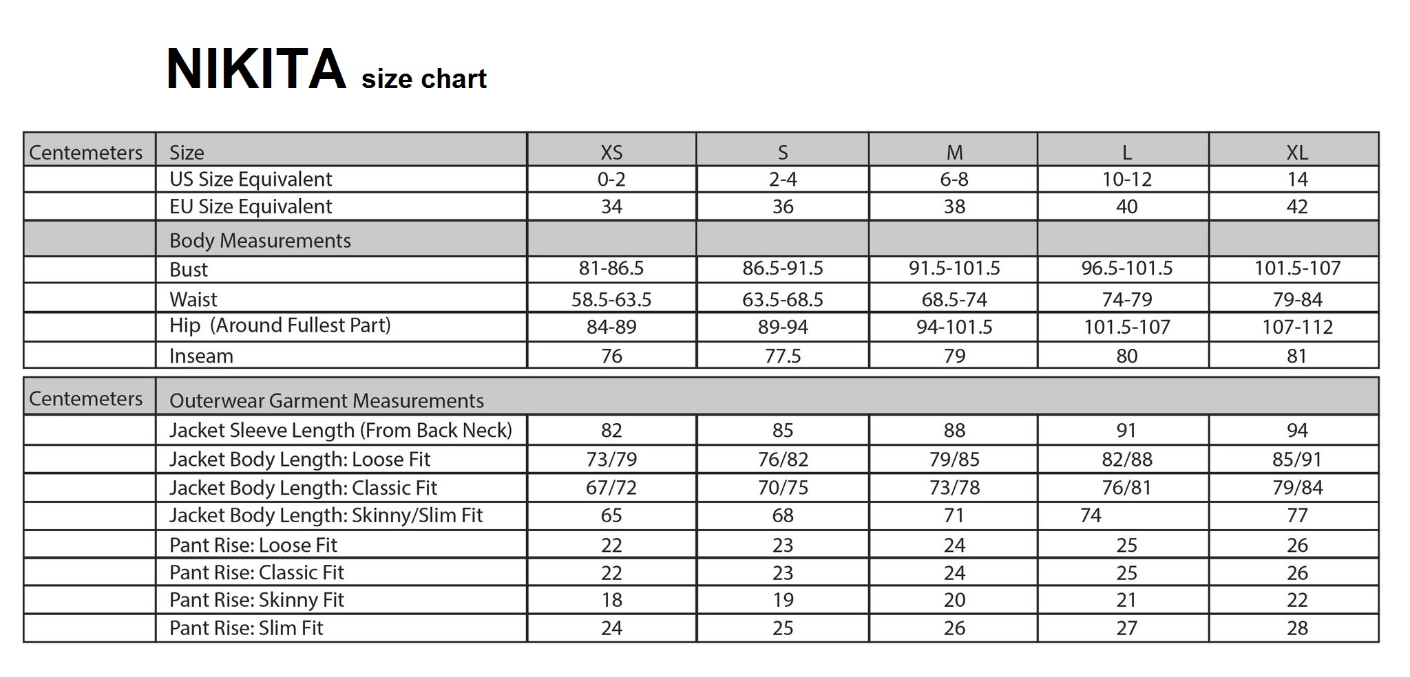 NIKITA — культовый бренд женской уличной и верхней одежды, который приносит стиль и непокорную уверенность в себе девушкам от улиц до гор. Со скромного начала бренда в конце 90-х от магазина скейтбордов бренд NIKITA преследовал одну цель, делать одежду для девушек, которые катаются, и это то, что ведет их до сегодняшнего дня и в будущее.