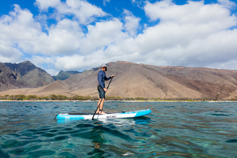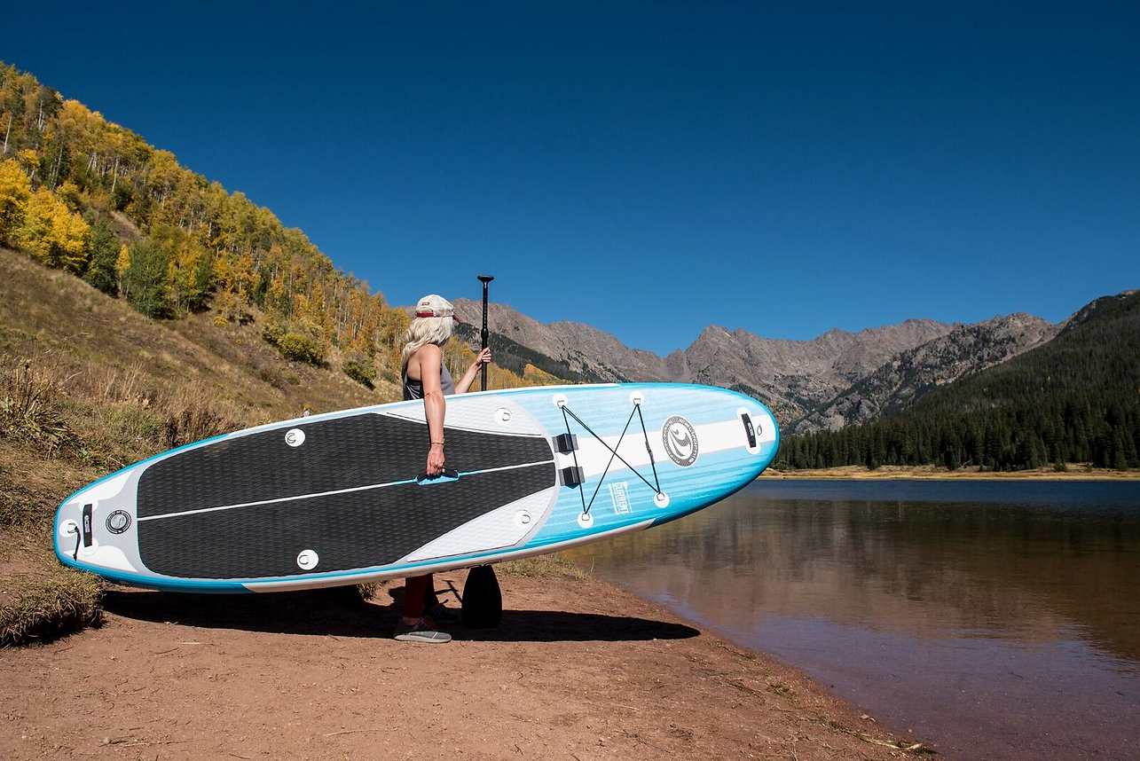 Специальное покрытие поможет вам отлично держать на доске или подняться, когда вы снова готовы встать на доске. Удобные эластичные ремни на носу доски можно использовать для фиксации весла или его частей. Всего 11 кг (в надутом состоянии), райдер любого размера сможет легко перенести SUP на берег с помощью любой из трех встроенных ручек для переноски.