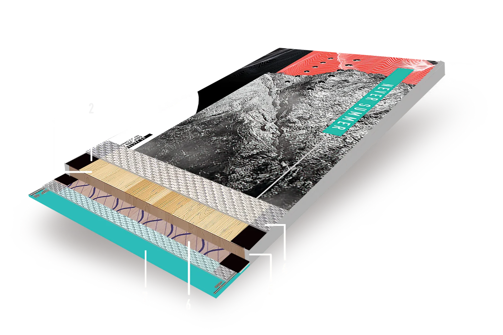 Премиальная верхняя поверхность сноубордов Never Summer. Очень прочный, легкий и устойчивый к царапинам и сколам термопластик. Верхняя крышка Premium topsheet также обеспечивает лучшее сцепление с доской, чем другие материалы верхнего листа, и работает как встроенный стомп-пэд.