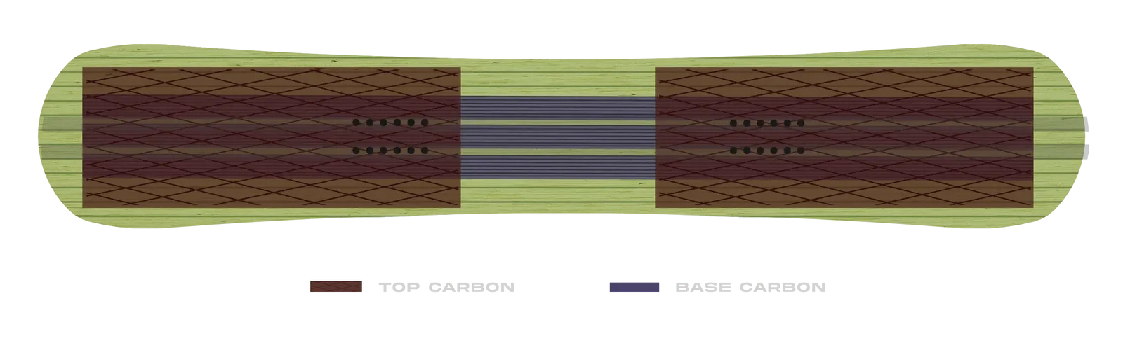 Карбоновая сетка расположенная в стратегических местах в сочетании с V-образными вставками на носу и хвосте, для придания жесткости на концах сноуборда, лучшего удержания кантов и устойчивости доски. RECLUSE WEB CARBON LAYUP сохраняет целостную гибкость доски и обеспечивает мощные выходы из поворотов.